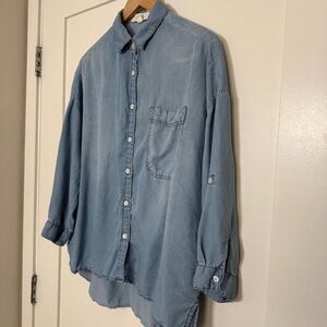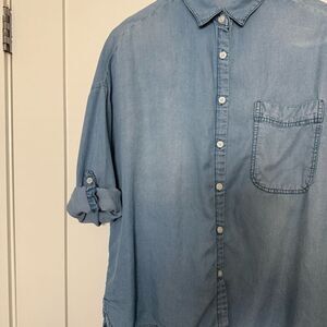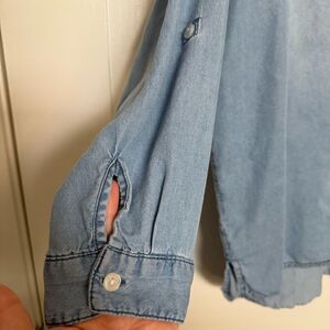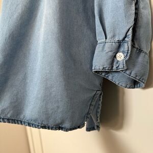 Thread & Supply Camp Top Shirt Womens Size L Blue Roll Tab Sleeve Soft Denim