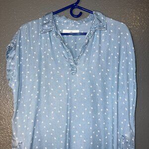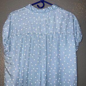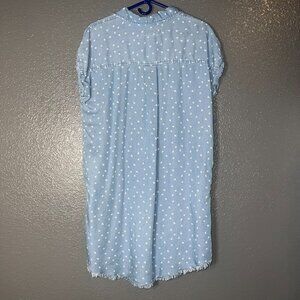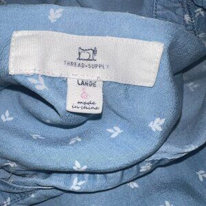 Thread Supply Chambray Shirt Dress Large Blue Floral Print Frayed Hem