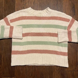 Thread & Supply Cozy Soft Striped Ribbed Crewneck Sweater Boho