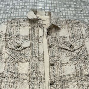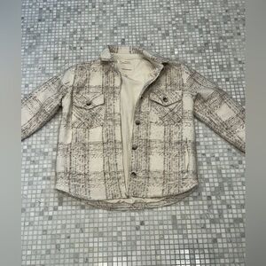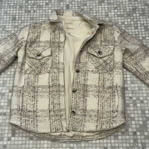 Thread & Supply Cream Brown Tan Plaid Boucle Jacket Shacket with Pockets
