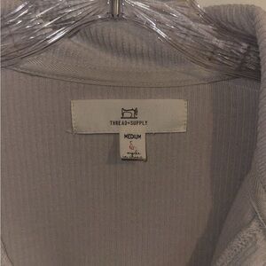 Light gray knit top with ribbed texture. Ideal for layering.