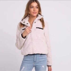 Thread & Supply Cream Soft Fuzzy Teddy Utility Jacket Coat Size S