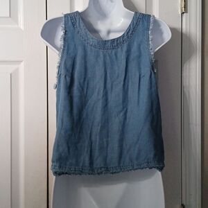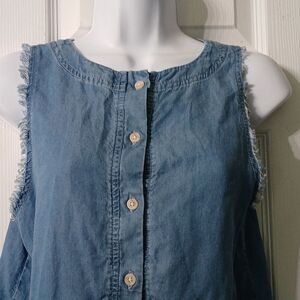 Thread & Supply Denim button down sleeveless raw hem top Sz S EUC