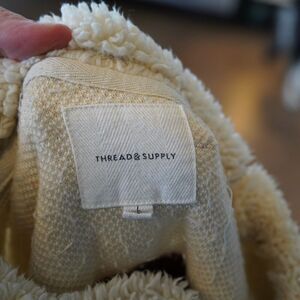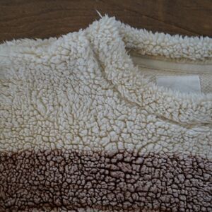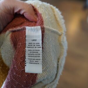 Thread & Supply Fleece Sweatshirt Womens Large Striped Ivory High Pile Fuzzy