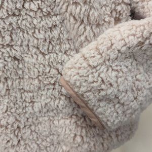 Soft comfy front zip fleece jacket. Dusty pink trim around waistband, cuffs, collar and pocket openings
