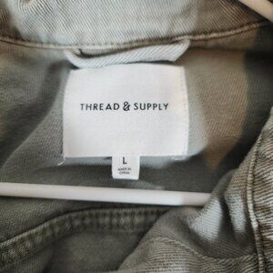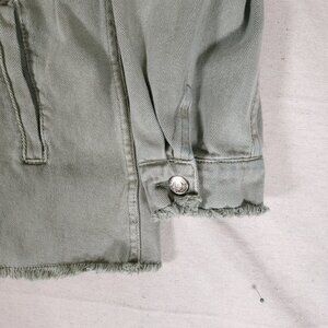 Thread & Supply Frayed Denim Jacket Womens Large Light Green Raw Hems FLAW