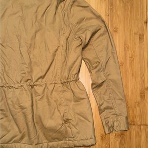 A gently worn Jacket by Thread and Supply in a women’s size small. Features sherpa lining, soft cotton canvas exterior, adjustable waist straps and lots of pockets!