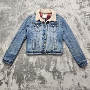 Thread & Supply Jacket Womens M Denim Flannel Lined Sherpa Collar Trucker Casual