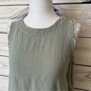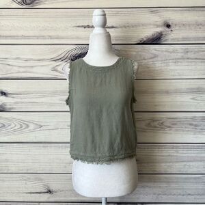 Thread & Supply Linen Sage Green Frayed Hem Button Crop Top