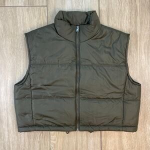 Thread & Supply Olive Puffer Vest Women’s Medium Zip Front Sleeveless Jacket