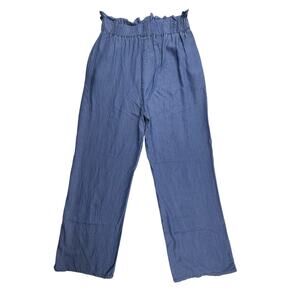 Thread + Supply Paperbag Pants Womens Large Chambray Blue Wide-leg Pull On Lightweight Tencel Cotton