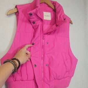 Thread & Supply Pink Nylon Crop Puffer Vest in excellent condition. Zipper and snap button closure.