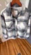 off-white / cream with a black blurry plaid pattern that looks gray (grey) in some areas due to the white color.