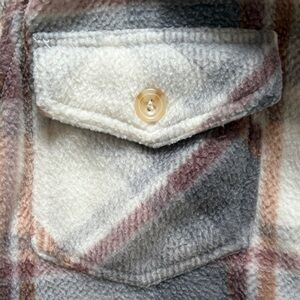 Cozy plaid shirt with button-down front. Oversized fit. Features chest pockets and soft fabric. Ideal for layering. Very warm