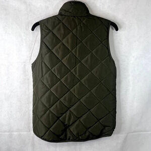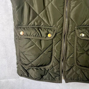 Sleeveless, mock neck, front pockets with gold snaps, gold full zip, quilted