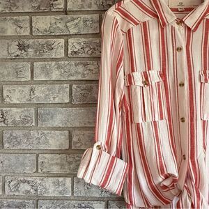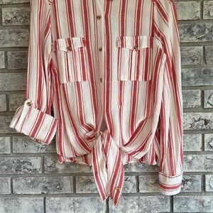 ThreadโŸ+ Supply Red & White Striped Tie-Front Button Down โ€“ Size M