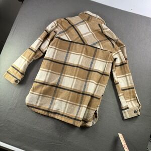 Thread Supply Shacket Women M Plaid Shirt Jacket Tan Cozy Flannel Button Hiking