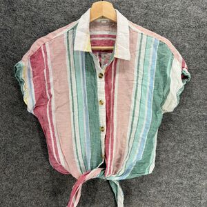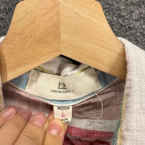 Thread + Supply Shirt Women M Medium Pink Striped Button Up Collared Linen