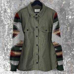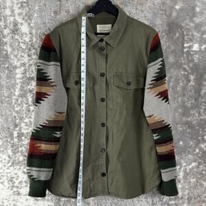 Thread Supply Size M Southern Aztec Casual Button Sweater Jacket Green Collar
