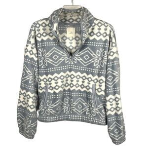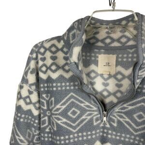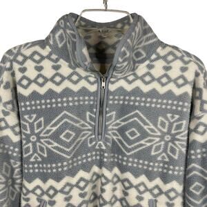 Thread & Supply Size S Fleece 1/4 Zip Pullover Jacket Fair Isle Pocket Blue