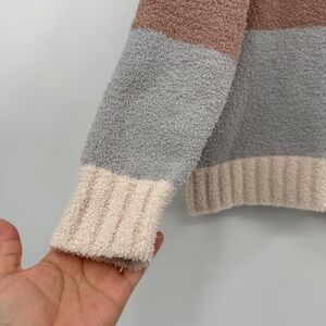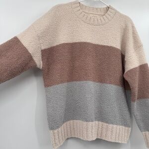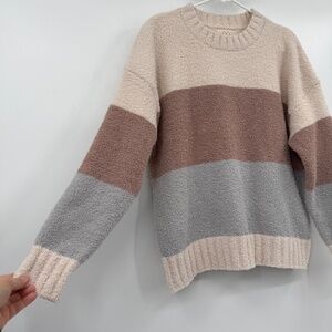 Style: Thread Supply Sweater Women Medium Ivory Mauve Fuzzy Long Sleeve Pullover Comfy