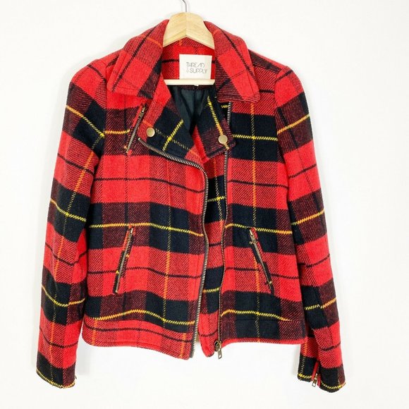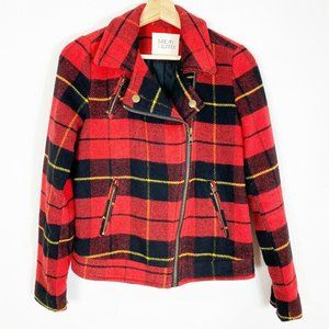 Thread & Supply Tartan Moto style zip jacket women’s Red black size Small