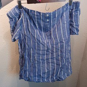 Thread & Supply Top Off the Shoulder Blouse Blue Vertical Stripe To Size Medium