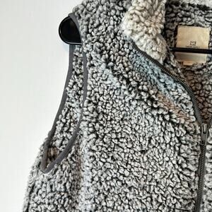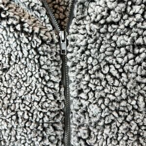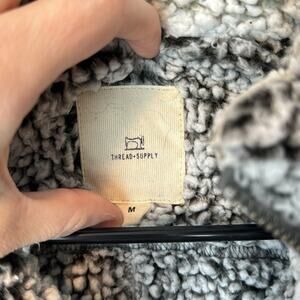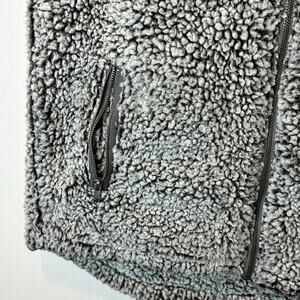 Gently Used Thread & Supply Full Zip Sherpa Vest. This is a women's medium. Grey color to it. Fluffy, warm, and comfortable. Two front zipper pockets.