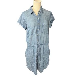 Thread & Supply Women Light Blue Wash Chambray at Knee Dress Sz L Button-Up NWT