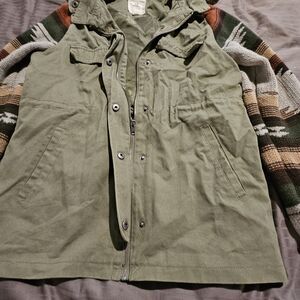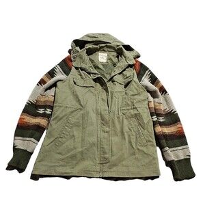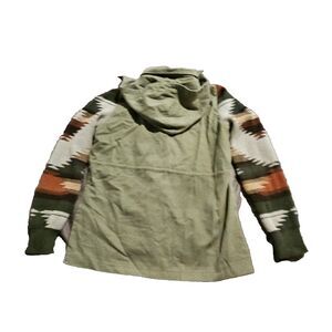 Thread & Supply Womens Jacket XS Olive Green Aztec Sleeve Hooded Zip Button Up