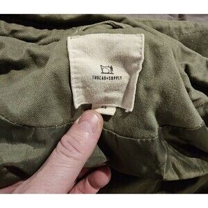 Thread & Supply Womens Jacket Size XS Olive Green Aztec Sleeve Hooded Zip & Button Up. Measurements are approximate, Shoulder to wrist 25". From pit to pit measures 19". Item is like new. Very good condition. Sold as shown in photos. Any questions please let me know. Thanks for looking.