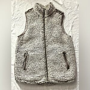 Cozy sherpa fleece vest. Features a zip-up front. Perfect for layering. See pictures for measurements. Preloved.