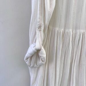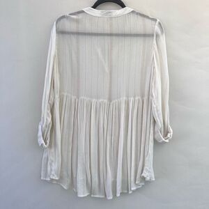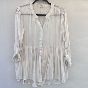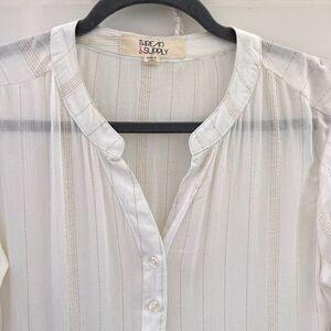 Thread & Supply Women's White Metallic Gold Stripes Roll Tab Sleeve Blouse Small