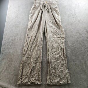 Thread & Supply Womens Wide Leg Pants Small Beige Casual Linen Drawstring Baggy