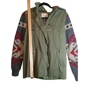 Thread & Supply hooded Jacket olive green utility Aztec knit size meduim