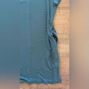 Thread & Supply Recreation womens size medium teal green short sleeve athleisure shirt dress with side slits, modest, casual, coastal, beach, nautical, neutral, closet staple, capsule wardrobe, comfortable, comfort, sports, relaxed fit