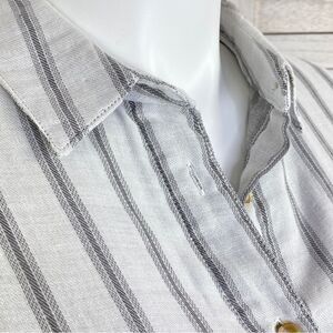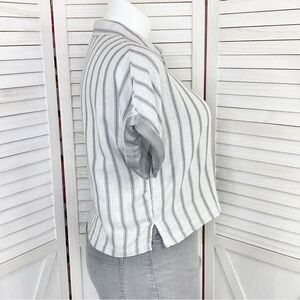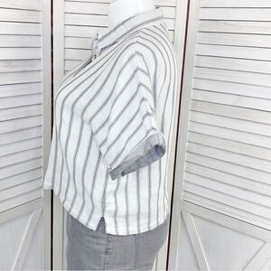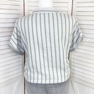 Thread & Supply Striped Button Front Crop Shirt White Gray XL