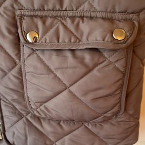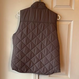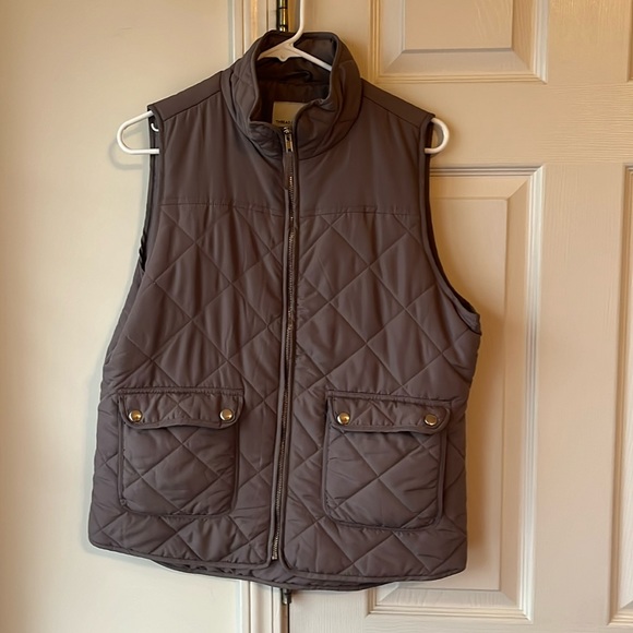Only worn once! Size large. A brown vest with gold accent buttons on the pockets in the front and the zipper is also gold.