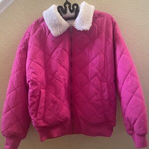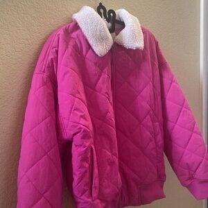 Take your look to new heights in this quilted, aviator-style jacket featuring a relaxed fit, a zip closure and a plush faux-shearling collar.