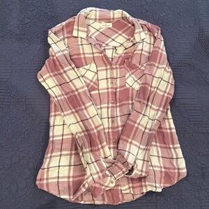 Super cute, pink plaid convertible shirt (has the strap so you can roll up and button up the sleeves to make it a 3/4 sleeve shirt). Thread and Supply brand.
