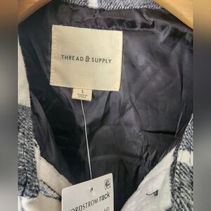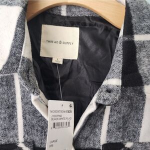 Thread and Supply shacket shirt jacket plaid front pockets size L black & cream
