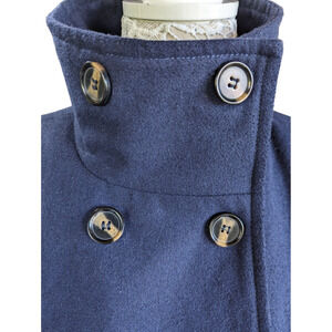 General wear- some loose threads, and light pilling. Could use a date with a lint roller as with most wool coats. Please see photos and ask any questions before purchase.