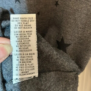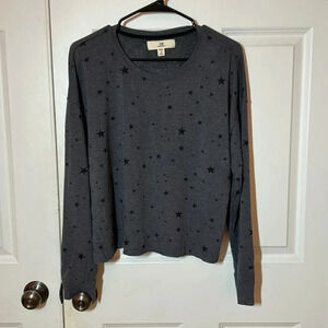 This is a thread and supply dark gray with black stars light sweatshirt. It is a size medium. 95% rayon 5% spandex.