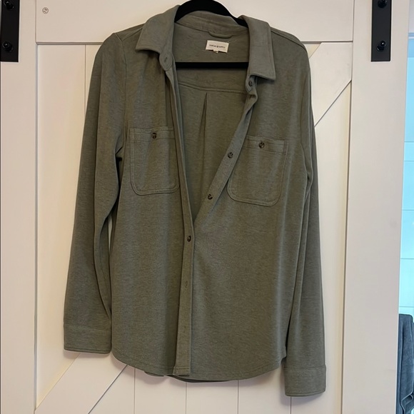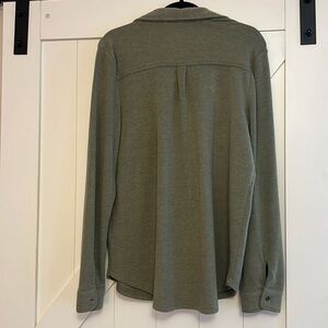 Button up. It looks great on its own or worn open with a tank or tee under. Versatile, soft, comfy. I’ve already bought it in my current size and other colors because I love this so much. Ready for its new home!