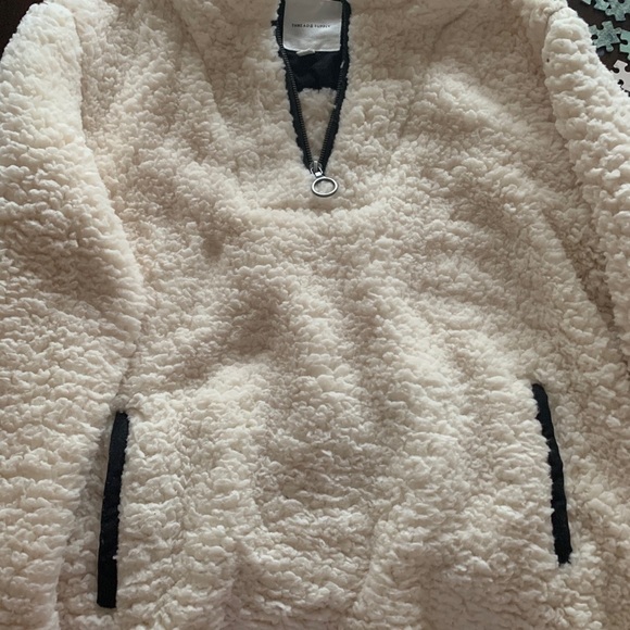 Thread and supply women’s Sherpa. Excellent condition never worn. Cream Sherpa black lined collar and kangaroo pocket. Cozy oversized fit.