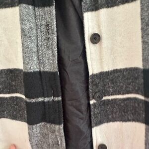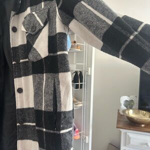 Stylish plaid jacket with buttoned chest pockets. Perfect for layering.