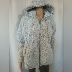 Warm jacket with hood in a regular khaki color in a size M