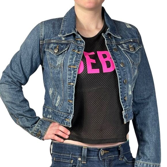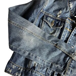Thread Supply Cropped Distressed Blue Jean Jacket