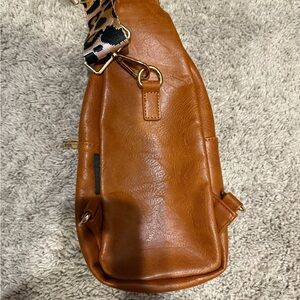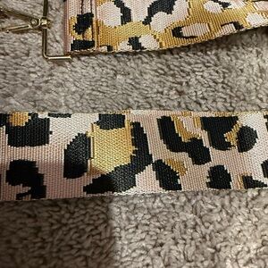 Stylish brown crossbody bag featuring a chic leopard print strap. Perfect for adding a touch of elegance to any outfit.