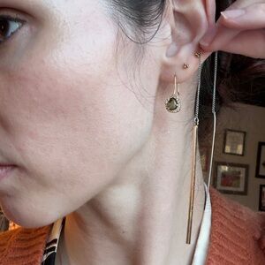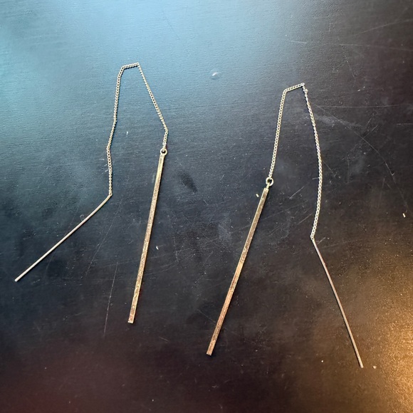 Long threader earrings with gold long rectangular dangles. Minimalism at its finest. Very elegant and simple.